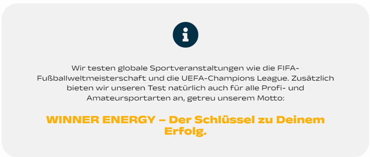 Wir präsentieren Dir stolz unseren ultimativen Winner Energy Test! Mit diesem neuen, hocheffizienten Tool kannst Du jetzt besser einschätzen, wie gut die Mitglieder einer Sportmannschaft miteinander harmonieren. Auch die Harmonie im Verhältnis zwischen Trainer und Mannschaft wird endlich messbar. Mithilfe des Winner Energy Tests bist Du in der Lage, vorherzusagen, wie gut das Team als ganzheitliche Einheit funktioniert. Du kannst dieses Wissen vielfältig nutzen.