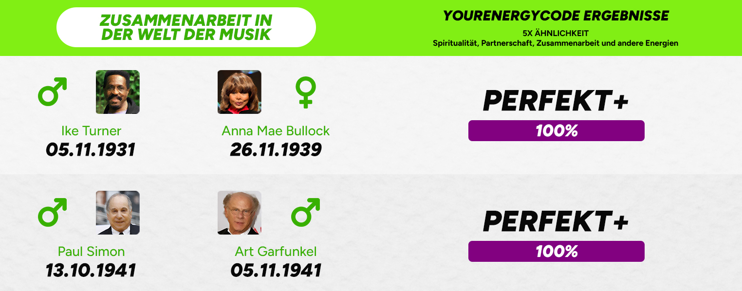Auch die Ergebnisse historischer Paare könnten für dich von Interesse sein. Du könntest sogar die Ergebnisse von Paaren, die bereits im Jahr 1850 geboren wurden, mithilfe unserer Algorithmen berechnen lassen.