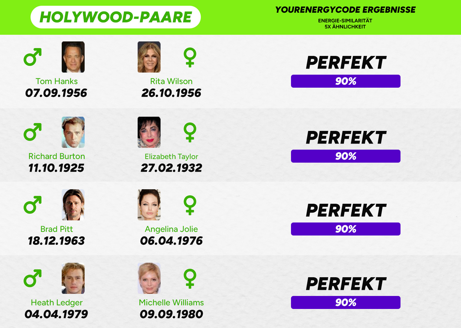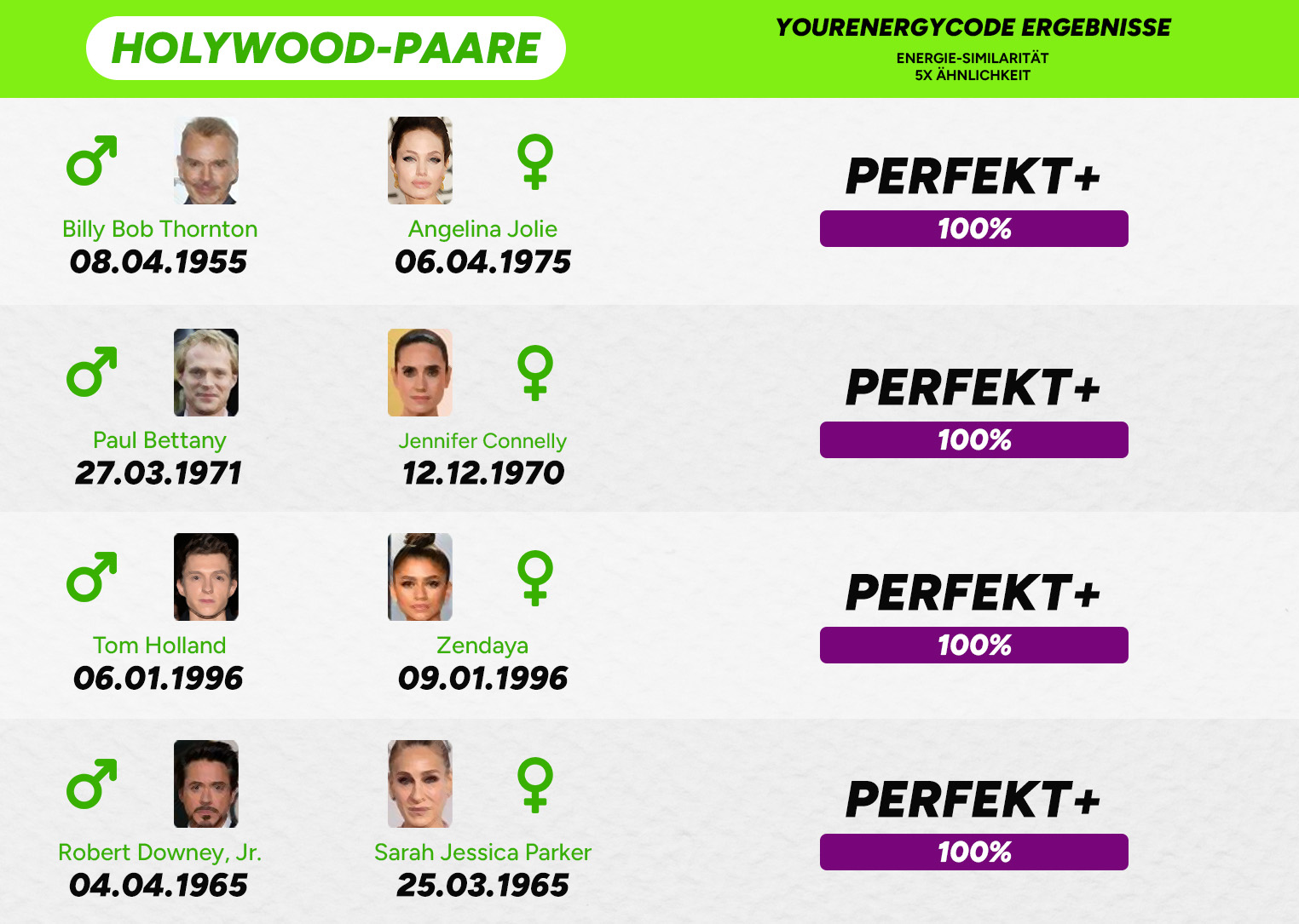 das als Ergänzung zu marktorientierten Datingseiten entstand, um die realen Mechanismen der Partnerwahl zu untersuchen und neu zu definieren. Das YourLoveCode-Team hat die Wahrheit über die Partnerwahl aufgedeckt: Paare kommen nach der 5x-Ähnlichkeitsregel zusammen, nicht jedoch nach den Schönheitsidealen, die von den Medien propagiert werden. Durch Tausende von Tests zur Synchronizitäts-Energie (SE) haben wir herausgefunden, dass Partner aufgrund physischer Ähnlichkeit, insbesondere der Gesichter, ausgewählt werden. Auch genetische Ähnlichkeit spielt eine Rolle bei der Partnerwahl.