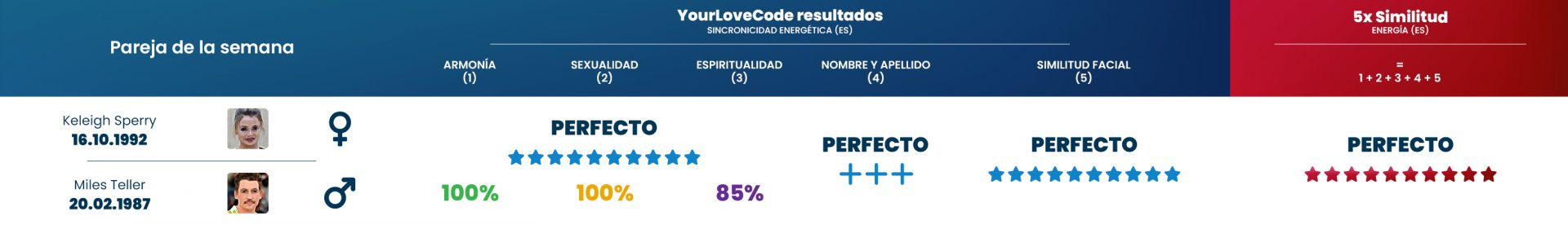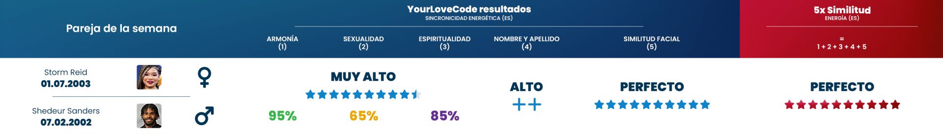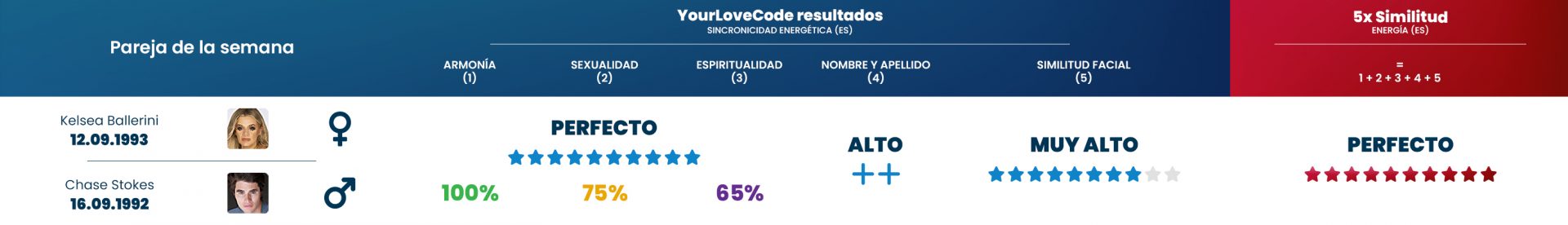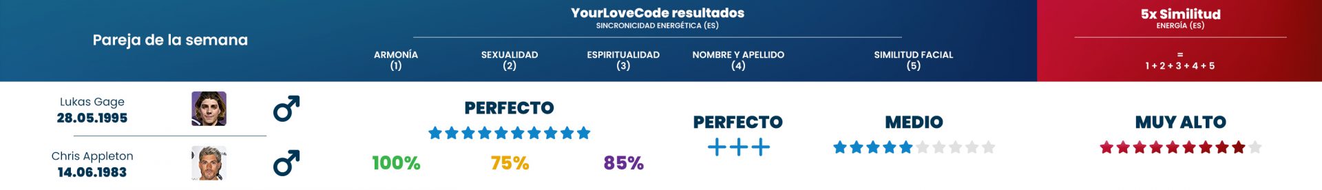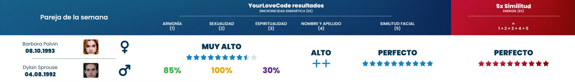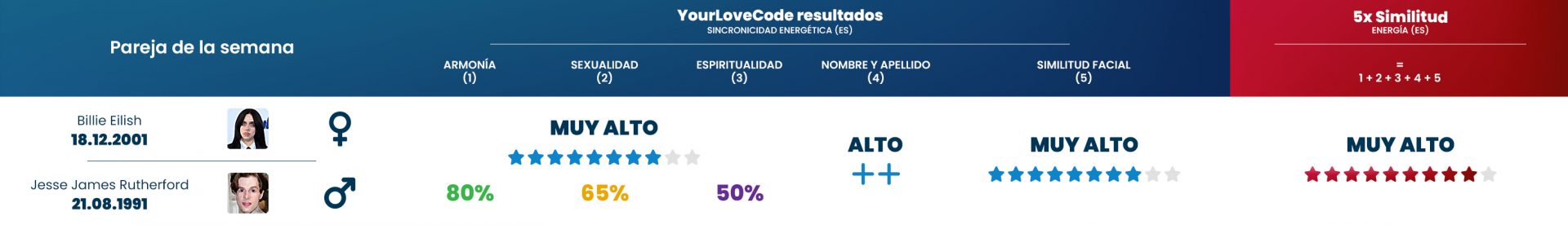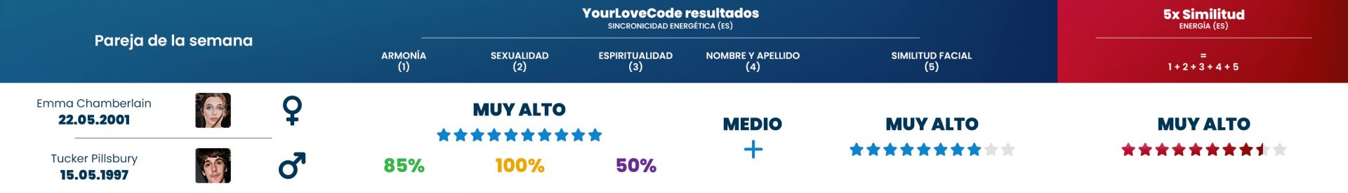 A pesar de la diferencia de edad de casi 30 años entre ellos, demuestran que el amor no se trata de la edad, sino de la conexión energética adecuada entre los compañeros. Nuestros algoritmos confirman que esta pareja tiene una coincidencia energética particularmente buena.